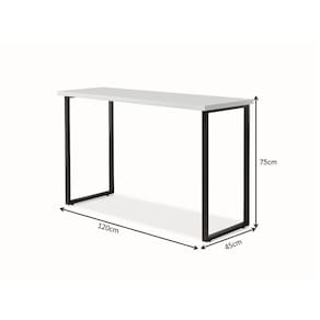 Mesa Home Office Escrivaninha para estudos 120 cm, produto com ótimo custo benefício, utilizando - se para estudos, trabalhos e entre outros, podendo acomodar - se facilmente em sua Casa!- Tampo Madeira Laminada (Anti Risco e Impermeável);- Estrutura em Aço Carbono (Maior Resistência e Durabilidade).ESPECIFICAÇÕES TÉCNICASAltura: 75 cm;Largura: 120 cm;Profundidade: 45 cm;- O produto será entregue desmontado;- É de inteira responsabilidade do cliente a montagem do produto e/ou instalação.