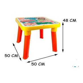 A tampa da mesinha é removível e a parte interna da mesa possui divisórias internas, perfeita para guardar materiais escolares( que não acompanham a mesa), etc. É um produto que pode ser utilizado por vários anos pela criança que pode brincar com pinturas, massinhas, slime, jogos e tudo mais que sua imaginação desejar. É ótima para espaços pequenos, fácil desmontar e guardar. É de plástico sendo muito fácil e prática de limpar.