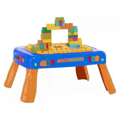 Baby Land Mesinha Criativa é um brinquedo super divertido e educativo. Vem com 20 blocos e adesivos de letras e números para as crianças colarem e aprenderem! Os pés da mesinha são retráteis, assim você pode fechar e levar para onde quiser. A tampa da mesinha possui uma trava, assim os blocos podem ficar guardados e organizados.