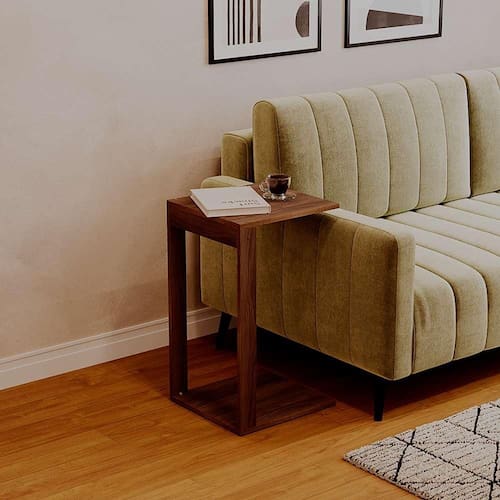 Transforme seu espaço com praticidade e elegância com a Mesa Lateral de Apoio Nogal Santorini!