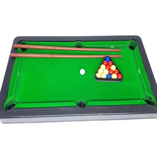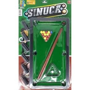 Mesinha Sinuca Infantil Snooker Brilhar Com 02 Tacos Bolinhas e Forro Aveludado Mesinha Infantil sinuca Tamanho 40cm com bolinhas, tacos e triangulo e forro aveludado. Material Plastico, Forro e laterais aveludada Contem: 01 Mesinha 15 Bolinhas 01 Bola Branca 02 Tacos 06 Pezinhos da mesa que segura as bolinhas Tamanho: 40cm Largura: 22cm Altura: 08cm Tamanho Tacos: 32cm cadas Selo Inmetro: CE-BRI/OCP0019 Garantia 90 dias contra defeitos de fabricação. Ean: 7908124293199