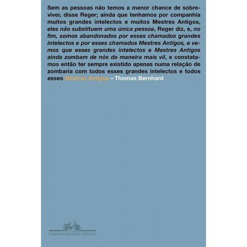 Bernhard faz um retrato cômico e implacável do meio artístico e da cultura austríaca por meio das conversas entre dois velhos amigos diante de uma pintura de Tintoretto.Por mais de trinta anos, Reger, um crítico musical octogenário, sentou-se no mesm o banco diante da pintura Homem de barba branca, de Tintoretto, no Museu de História da Arte de Viena. Ali ele reflete, dia sim, dia não, sobre a sociedade contemporânea, seus pares, a arte e os artistas, o clima e até o estado dos banheiros públicos .O amigo Atzbacher, um filósofo bem mais jovem, é convocado a encontrá-lo no museu num sábado, dia sempre evitado pelo crítico. E é através do seu olhar que passamos a conhecer mais sobre Reger — a morte trágica de sua mulher, seus temidos pensamento s suicidas, a relação difícil com seu país e, por fim, qual o verdadeiro propósito daquele encontro.Tão pessimista como exuberante, rancoroso e ao mesmo tempo hilário — no melhor estilo de Thomas Bernhard —, o romance é composto de um único parágrafo que se estende por 182 páginas e remonta uma série de conversas entre os dois amigos. Mestres A ntigos foi publicado originalmente em 1985 e é um retrato satírico da cultura e da nação austríaca, discutindo questões como genialidade, class e e as aspirações da humanidade.“O romance mais saboroso de Bernhard.” — Robert Craft, New York Review of Books“Bernhard é um dos mestres da ficção europeia contemporânea.” — George Steiner