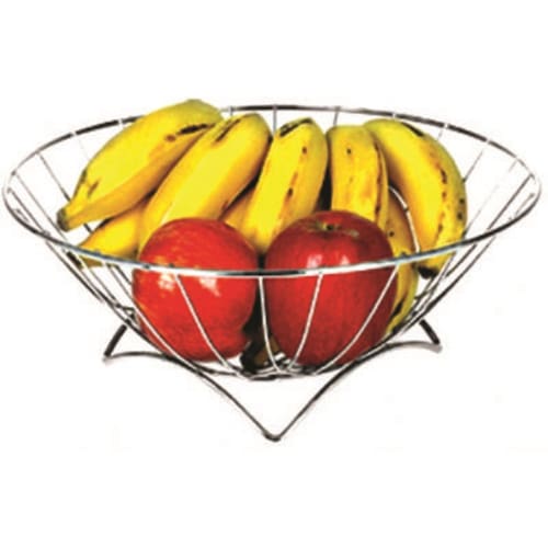 Com um design cromado, essa fruteira adiciona um toque de sofisticação à sua mesa ou balcão de cozinha. Além disso, seu formato aberto permite que as frutas respirem, ajudando a prolongar sua vida útil e mantendo-as frescas por mais tempo.