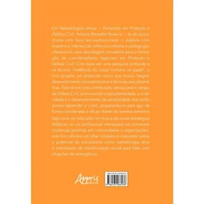 Em Metodologias Ativas – Formação em Proteção e Defesa Civil, Antonia Benedita Teixeira — às do psicodrama com foco socioeducacional — explora com maestria a intersecção entre psicodrama e pedagogia, oferecendo uma abordagem inovadora para a formação de coordenadores regionais em Proteção e Defesa Civil. Com base em uma pesquisa profunda e na técnica “metáforas do corpo humano no papel”, o livro propõe um protocolo único que busca integrar desenvolvimento socioemocional e técnicas psicodramáticas. Esta obra é uma contribuição valiosa para o campo da Defesa Civil, promovendo a espontaneidade, a criatividade e o desenvolvimento da sensibilidade dos profissionais (aprender a criar), preparando-os para agir de forma coordenada e eficaz diante de eventos extremos. Seja você um educador em busca de novas estratégias didáticas ou um profissional interessado em promover mudanças positivas em comunidades e organizações, este livro oferece um olhar inovador e inspirador sobre o potencial do sociodrama como metodologia ativa e instrumento de transformação social para lidar com situações de emergência.