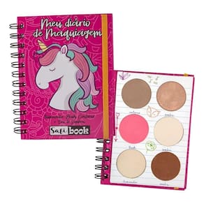 A Paleta Meu Diário de Maquiagem Safibook Modelo Unicórnio é o item ideal para quem ama praticidade, qualidade e um toque de fofura no nécessaire. Com design que imita um caderno, ela possui espiral para abertura, instruções de uso no interior e um conjunto completo de maquiagem.