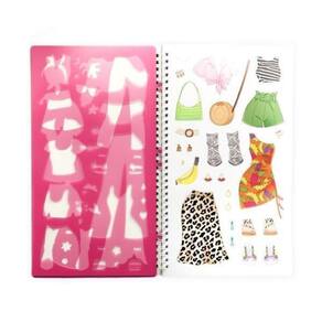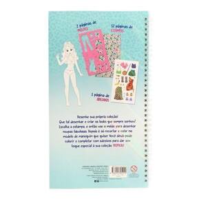 Desenhe sua própria coleção! Que tal desenhar e criar os looks que sempre sonhou? Escolha a estampa, e então use o molde para desenhar roupas fabulosas. Depois é só recortar e colar no modelo de manequim que quiser. Você ainda pode colorir e completar com adesivos para dar seu toque especial à sua coleção Tropical !???