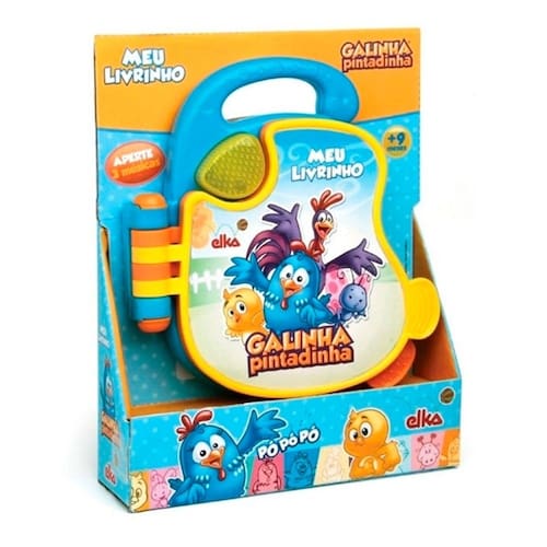 O Meu Livrinho Galinha Pintadinha toca uma musica da Galinha com apenas um botão, a diversão não vai ter hora para acabar. A galinha mais famosa e querida possui cores vibrantes e bem coloridas com formato arredondado, evitando atrito, com contato agradável e cores atrativas que atraem a atenção do bebê. O Livrinho tem alça pro bebê segurar com facilidade e total segurança!