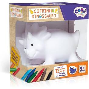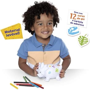 Um incrível cofrinho em formato de dino para a criança estilizar como ela quiser!
