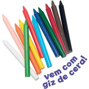 Produzido em vinil atóxico, acompanha 12 cores de giz de cera e cartela de adesivos.
