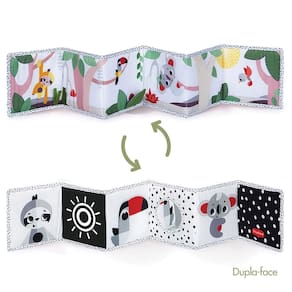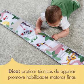 Características: Design Dupla Face: De um lado, o contraste em preto e branco estimula os bebês mais novos, enquanto do outro lado, as cores suaves e personagens encantadores cativam os bebês maiores. Estímulos Sensoriais: Com 7 atividades divertidas, incluindo texturas lúdicas, formas contrastantes e elementos como espelho, fitas de cetim e folha de esconde-esconde com textura e barulho. Adaptável e Prático: Fácil de dobrar e transportar para qualquer lugar, adaptando-se facilmente à maioria dos carrinhos e equipamentos para bebês. Desenvolvimento Etapa a Etapa: Estimula o desenvolvimento visual em bebês mais novos, habilidades motoras em sessões de tummy-time e a cognição com brincadeiras de esconde-esconde.