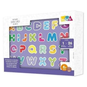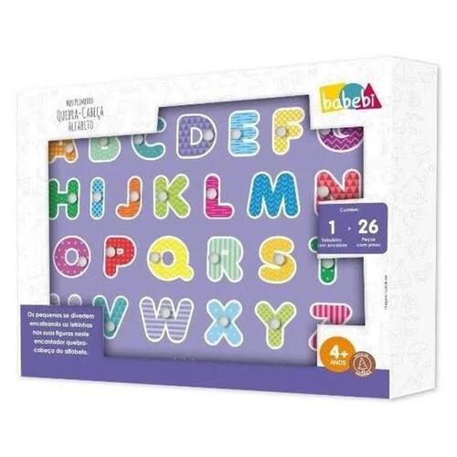 - Brinquedo de madeira Meu Primeiro Quebra-Cabeça - Alfabeto, da BaBeBi - Cód. 8004. - Indicado para crianças a partir de 4 anos. - O Tabuleiro mede 30 x 22 cm. - Contém 1 tabuleiro e 26 peças. - Feito de madeira de Reflorestamento e Certificada. - Possui o Selo Abrinq e o Selo de Segurança do Brinquedo do InMetro: CE-BRI/TUV-0018712.0 - Embalagem do brinquedo especial, com visor transparente. Ean: 7898102628047