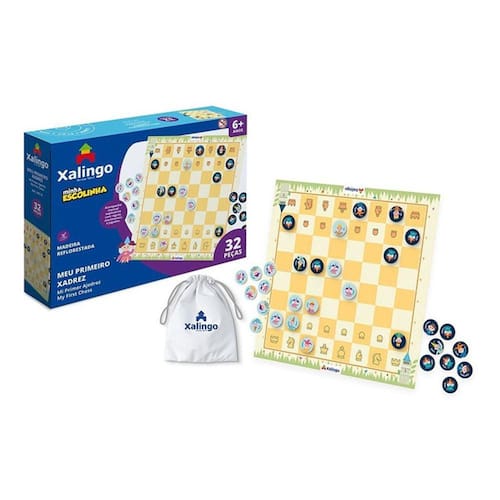 Agora os momentos de diversão estão garantidos! Os pequenos aprenderão de forma descontraída a jogar xadrez. Uma batalha entre dois reinos, e para ser o grande vencedor, é preciso conhecer os movimentos, criar estratégias e prestar atenção nas jogadas. Estimula a concentração, desperta o valor do respeito da criança com relação ao seu adversário, além de promover a paciência, estimula o raciocínio lógico e é excelente para a memória.Preço por unidade.Contém:- 32 peças em madeira reflorestada.- 1 Tabuleiro dobrável.- 1 Saquinho de TNT- 1 Manual explicativoEspecificações:- Dimensões aproximadas: 20,5cm (altura) x 5cm (largura) x 15cm (comprimento)- Composição/Material: Madeira Marca: XALINGO S A
