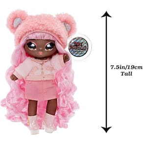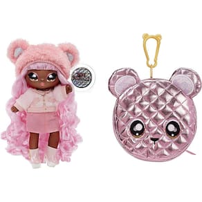 Nivele seu jogo glam com a Série Na Na Na Surprise 2 em 1 Soft Fashion Doll Glam Series! Você ganha 2 em 1 valor com uma boneca de moda macia mais uma bolsa de tecido metálico colecionável! Levando o brilho para o próximo nível, a série glam apresenta tecidos metálicos atraentes nas modas e bolsas de bonecas inspiradas em animais, que tem um clipe bonito e em forma de animal conveniente para anexar a uma mochila ou bolsa maior. As bonecas Na Na Surprise são as primeiras bonecas de moda macias e posable com rosto estampado e detalhes de moda. Agora destaque em uma caixa de janela para mostrar todos os detalhes de qualidade, será mais fácil do que nunca coletar todos eles! Cali Grizzly vem com uma etiqueta com seu nome, aniversário e um pouco sobre ela. A Série Glam inclui 6 bonecas de moda macias adoráveis e bolsas de pom de tecido metálico para coletar.