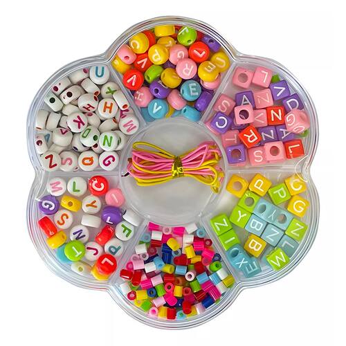 Variações Diversificadas: Inclui bolinhas coloridas vibrantes, miçangas em forma de corações e letras, permitindo que as crianças soltem a criatividade na hora de montar colares, pulseiras e muito mais.Estimula a Coordenação Motora: Trabalhar com as miçangas desenvolve a destreza manual e a coordenação motora fina, enquanto as crianças se divertem criando suas obras de arte.Atividade Educativa: As miçangas com letras ajudam as crianças a aprender o alfabeto, promovendo o reconhecimento de letras e palavras de maneira lúdica.Material Seguro: Fabricadas com materiais atóxicos e duráveis, as miçangas são seguras para as crianças usarem em suas criações.Detalhes do Produto: