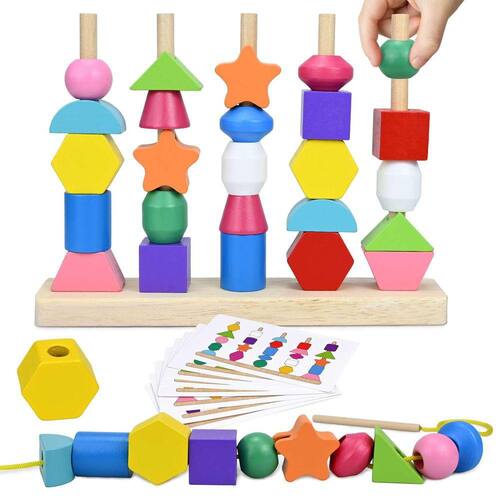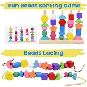 - 🟦?Jogo de cadarço de miçangas para crianças?🔵 O brinquedo educativo de madeira contém miçangas e cordões coloridos, 2 cordões de rosca, ambos com palitos de madeira de 3 polegadas de comprimento. As crianças podem facilmente amarrar as miçangas e o divertido jogo pode causar um grande interesse neste brinquedo de madeira amarrado. Ele pode desenvolver melhor a coordenação olho-mão das crianças, o que é útil para a educação pré-escolar.