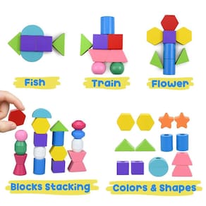 - 🟩?Divertido jogo de classificação de miçangas?🟢 Este empilhador de combinações de blocos com padrões de madeira pode exercitar as habilidades práticas das crianças. Uma carta é escolhida aleatoriamente e, de acordo com a ordem na carta, as crianças empilham as contas na posição correta na moldura de madeira. Este é um ótimo jogo de combinação para as crianças praticarem e desenvolverem suas habilidades de resolução de problemas. Miçangas de várias formas e cores podem ser combinadas de maneiras infinitas para estimular a imaginação e a criatividade das crianças.