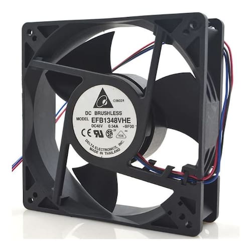 O microventilador é fácil de instalar, com fiação de 2 pinos que se conecta diretamente a uma fonte de alimentação de 48V DC.