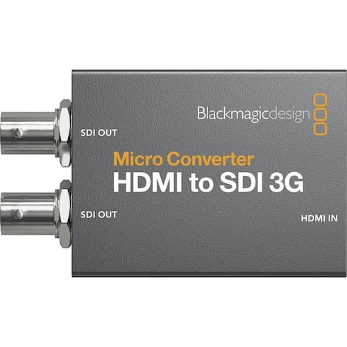 Super compacto e robusto, o Micro Conversor HDMI para SDI 3G da Blackmagic Design CONVCMIC/HS03G/WPSU permite conectar câmeras ou computadores HDMI a monitores ou componentes SDI BNC de estilo profissional. Você também pode usar várias unidades para estender o HDMI por longas distâncias usando o cabo SDI. Este conversor compacto tem uma entrada HDMI e duas saídas 3G-SD/HD/SDI que podem ser configuradas para Nível A ou B. O Micro Conversor HDMI para SDI 3G detecta automaticamente e combina sua entrada HDMI com a saída SDI e é compatível com resoluções de entrada/saída de até 1080p60. além disso, o Micro Converter HDMI x SDI 3G possui suporte a timecode HDMI, re-clocking SDI para estabilidade em cabos longos e suporte para uma ampla variedade de resoluções de transmissão profissional, incluindo 48fps no estilo cine.Este micro Conversor Blackmagic HDMI para SDI 3G Com Fonte possui uma carcaça de metal resistente com indicadores de status de LED de energia e sinal e interfaces de conector robustas. Uma porta USB tipo C permite que o conversor HDMI para SDI 3G se conecte facilmente e seja alimentado por monitores de tela grande, laptops, computadores de mesa ou projetores. Você também pode alimentar este conversor usando a Fonte de Alimentação bivolt incluída, completa com quatro adaptadores de soquete internacionais.Saídas SDI Duplas Uma entrada HDMI Duas saídas 3G-SDI Formatos selecionáveis de nível A e BDesign compacto e robusto Corpo de metal robusta e conectores robustos Porta 3G-SD/HD/SDI para alimentação por meio de um componente compatível, como um monitor ou laptop Atualizável via porta USB-C Type-C e seu ou PCTimecode SDI e HDMI Suporte para timecode HD e SD Converte o timecode HDMI em SDIRe-Clocking SDI O Re-Clocking integrado na saída 3G-SDI permite uma saída estável em cabos mais longos Compatível com SMPTE 259M/292M/296M/424M/425M nível A e BSuporte de resolução mais amplo Suporte SDI de NTSC e PAL até DCI 2Kp60 Suporte HDMI de NTSC e PAL até 1080p60Áudio Integrado Suporta entrada HDMI integrada e saída SDI integradaIndicadores LED Indicadores LED para sinais de vídeo e energiaOpções de energia versáteis Energia de um monitor, laptop ou outro componente usando a porta USB-C Type-C inclui uma Fonte de Alimentação Bivolt com quatro adaptadores de soquete