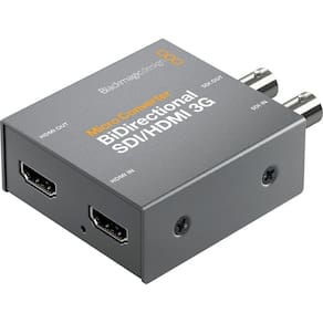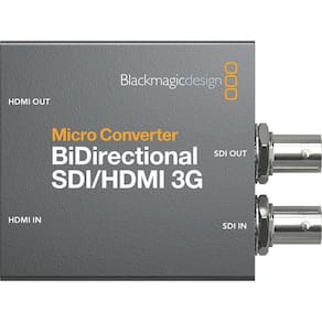 O Micro Converter BiDirectional SDI/HDMI 3G da Blackmagic Design . Este conversor bidirecional compacto pode converter simultaneamente SDI em HDMI e vice-versa, mesmo usando padrões diferentes, e suporta resoluções de até DCI 2K em SDI e 1080p60 em HDMI.