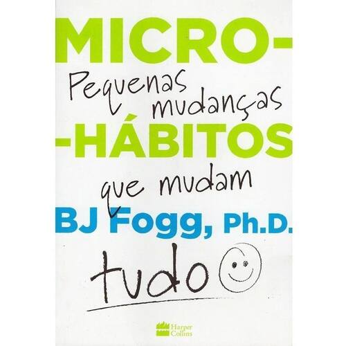 Título do livro : Micro-hábitos Subtítulo do livro : As pequenas mudanças que mudam tudo Autor : Fogg, B.J. Idioma : Português Editora do livro : Casa dos Livros Editora Ltda Capa do livro : Mole Com índice : Não Ano de publicação : 2020 Quantidade de páginas : 336 Altura : 230 mm Largura : 155 mm Peso : 500 g Com páginas para colorir : Não Com realidade aumentada : Não Tradutores : Clapp Roberta, Fiuza Bruno Gênero do livro : Autoajuda Subgêneros do livro : Autoajuda, Desenvolvimento pessoal, Psicologia popular Tipo de narração : Conto Idade mínima recomendada : 18 anos Data de publicação : 13-04-2020