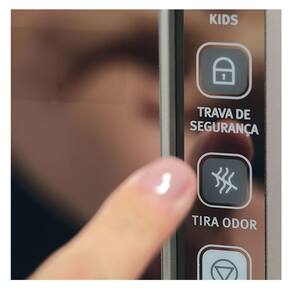 Display: Economia de energia, desligue o painel digital quando terminar de usar o aparelho. Função Manter Aquecido: Suas receitas no tempo e na temperatura certa. Função Mudo: Aperte a tecla 0 por 4 segundos e o som do “bip” desaparece. Função Relógio: Facilidade no ajuste da hora. Função Tira Odor:Minimiza odores internos do Micro-Ondas. Menu Descongelar: Com apenas um toque descongela automaticamente carne, frango e feijão. Menu Kids: As receitas favoritas das crianças em um toque. Painel Integrado com puxador embutido: Principais funções sempre à mão e um puxador moderno. Porta espelhada: Mais modernidade para sua cozinha e mais sofisticação para seu Micro-ondas. QR Code: Vídeos com passo a passo das receitas dos menus. Tecla Dia a Dia: Prepara as receitas mais usadas como arroz, macarrão e lasanha. Tecla Início/ +30s: Seu micro-ondas funcionando em um toque. Programação de tempo rápida e descomplicada. Tecla Meu Prato: Programa e grava na memória do micro-ondas sua receita favorita. Tecla Porção: Escolha a quantidade do alimento para cozimento. Teclado numérico: Selecione o tempo desejado e acione o funcionamento do micro-ondas. Trava de segurança:Tecla que permite travar o acionamento do aparelho.