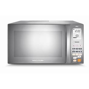 Micro-ondas Brastemp Ative Inox 38L com Grill 220vO micro-ondas Brastemp Ative! 38 litros possui display LCD aliado à um design inovador e uma das maiores capacidades do mercado, além disto, conta com funções pré-programadas que facilitam o preparo de receitas do dia a dia. Não perca tempo, garanta já o seu!Praticidade ao dia a dia Possui funções modernas como Smart Food, um menu de 10 receitas completas pré-programadas e a Tecla “Meu Jeito” que salva suas preferência na memória do aparelho.Dourado Perfeito A Função Gratinar é ideal para a finalização dos pratos, permitindo grelhar e dourar seus alimentos, garantindo mais sabor e aquele toque especial para suas receitas.Função Smart Food Esta função avisa o próximo passo de sua programação.Função Meu Jeito Armazene sua receita preferida, facilitando novos preparos.Menu Descongelar Descongele carnes bovinas, frango e pratos prontos de maneira rápida e simples.Especificações Técnicas - Marca: Brastemp - Modelo/Referência: BMJ38ARBNA - Tensão: 220V - Capacidade: 38L - Tipo: Elétrico - Potência: 1000 W - Consumo: 1500W - Classificação Energética: B - Material: Esse produto possui apenas cor Inox - não contém nenhum componente de aço inoxidável (Inox) - Cor: Inox pintado - Receitas pré-programadas: 10 receitas: carne moída, macarrão, arroz, peixe, omelete, legumes, sopa, suflê, pudim, bolo de caneca - Trava de Segurança: Sim. Esta função é ativada sempre que o micro-ondas ficar inativo por mais de 60 segundos. Para destravar o produto, deve abrir e fechar a porta - Acessórios: Suporte Metálico - para aumentar a eficiência da função "gratinar". Utilize o suporte metálico para aproximar os alimentos da resistência elétrica. - Dimensões (LxAxP): 55,3 x 31,1 x 46,7 cm - Peso: 17kg - Garantia: 12 meses