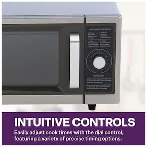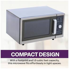 CONTROLE DE COZIMENTO SEM ESFORÇO Ajuste facilmente os tempos de cozimento com o intuitivo controle de discagem, com opções de temporização variando de 10 a 50 segundos em intervalos de 10 segundos, incrementos de 30 segundos de até 3 minutos, e intervalos de 1 minuto de até oito minutos. DURABILIDADE DE QUALIDADE COMERCIAL Construído com um interior e exterior de aço inoxidável, este micro-ondas foi projetado para resistir às exigências do uso comercial, sendo perfeito para lojas de conveniência, salas de descanso de escritórios, restaurantes de serviço rápido e muito mais. DESIGN COMPACTO Com uma pegada compacta e capacidade interna,este micro-ondas cabe facilmente em balcões ou em espaços apertados, sendo ideal para diversos estabelecimentos de serviços de alimentação e instalações. APLICAÇÕES VERSÁTEIS Desde aquecer sopas e sanduíches até preparar pizzas e casseroles, este micro-ondas oferece uma solução conveniente para uma ampla gama de alimentos, tornando-o indispensável para cozinhas movimentadas e preparação de alimentos em movimento. CARACTERÍSTICAS CONVENIENTES Equipado com uma alça grande e fácil de segurar e uma janela de vidro transparente, este micro-ondas facilita a retirada de alimentos e a monitorização do processo de cozimento, melhorando a conveniência e eficiência do usuário.