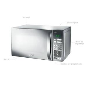 Marca: ConsulReferência: CM020BFANA.Modelo: CM02Capacidade: 20lCor: CinzaPotência: 620WPainel: Sim, digital.Material- cavidade e capa externa: pintada- porta, puxador e painel: plástico.