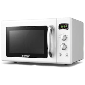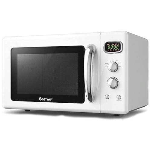 Micro-ondas de bancada multifuncional com 25 litros, 900W, 5 níveis de potência, 8 menus de cozimento automático, aquecimento giratório 360°, display LED e timer com lembrete.Função Grill