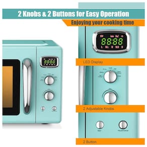 Potência de saída de 900 W para aquecimento uniforme Equipado com motor de potência de 900 W, este micro ondas retro compacto oferece alta eficiência para aquecer alimentos ou bebidas. Com tecnologia inteligente, este pequeno forno de micro ondas pode aquecer alimentos ou bebidas uniformemente em 360 graus. 5 Micro Power Glass Turntable O forno de micro ondas retrô foi projetado com 5 micro de potência para alimentos populares, como pipoca, pizza, batatas e muito mais. Além disso, com o prato giratório de vidro e a janela de visualização, você pode monitorar quando os alimentos ou bebidas estão sendo aquecidos. Temporização de LED e 6 botões convenientes O display LED claro mostra o tempo restante de cozimento para que você saiba quanto tempo deve processar os alimentos. Três bipes após a conclusão do aquecimento. É fácil de operar com descrições de função abaixo dos 6 botões mecânicos retro