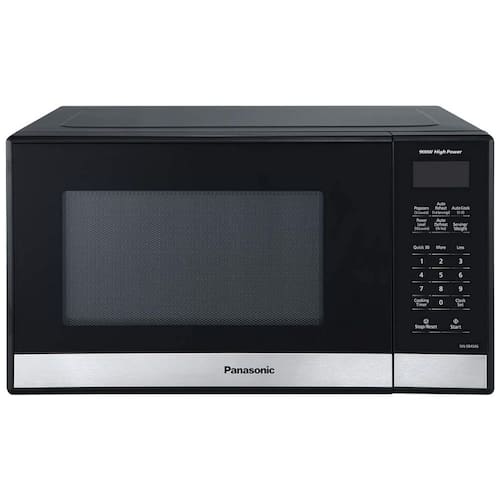 Micro-ondas Panasonic de bancada 25L, 900W, com 7 programas predefinidos, prato giratório de 25cm, função Keep Warm, trava de segurança, início retardado e pipoca com 3 níveis.Função Grill