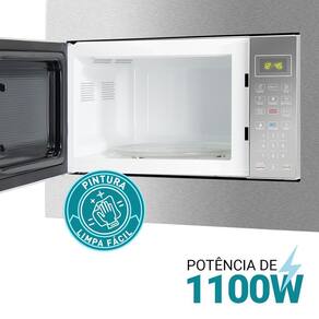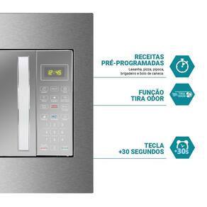 Micro-ondas de embutir, 28L de capacidade total (14L útil), 1400W de potência, Prato giratório de 28,5 cm, Pintura interna Limpa Fácil, Display digital, Função Descongelar por tempo ou peso, Função +30 segundos, Função Cozinhar por tempo ou peso, Função Manter Aquecido, Função Tira Odor, Função Travar, Receitas pré-programadas (Lasanha, Menu Fit, Pizza, Pipoca, Brigadeiro, Bolo de Caneca).Função Grill