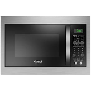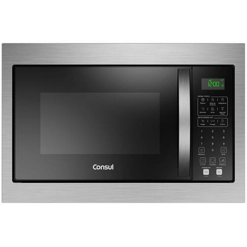 - Design moderno: fácil de limpar e prático de usar. - Menu Fácil: Receitas práticas para o dia a dia. Pipoca; Bolo de caneca; brigadeiro; Omelete; Arroz; Aquecer Pizza. - Espaço de sobra: O espaço perfeito para todo tipo de prato. - Função Tira Odor: Chega de micro-ondas com cheiro de comida! - Menu descongelar: Descongela os alimentos ao toque de um botão. Descongelar Feijão; Descongelar Frango; Descongelar Carne. - Ajuste fácil de potência: A potência certa para o preparo das suas receitas - Opção Mute: Silencie os alertas sonoros do micro-ondas. - Trava de segurança - Tipo de painel: Digital (Membrana) - Tipo de display: LCD - Com prato giratório - Classificação energética: A - Corrente (amperagem) 127 V (A): 11 - Corrente (amperagem) 220 V (A): 7 - Frequência 127 V (Hz): 2450 - Certificação do INmetro: UL-BR 21.1489 / UL-BR 21.1490 - Cor principal: preto - Cor moldura: inox - Dimensões do nicho de embutir: 38 x 56 x 45,5 cm (A x L x P)Função Grill