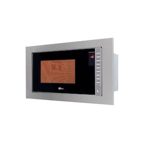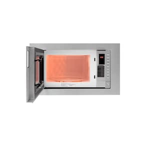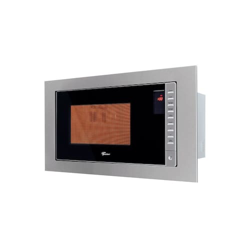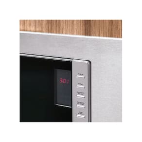 Acabamento em aço inox, Display digital vermelho, Teclas frontais, 5 níveis de potência, Descongelamento por tempo ou peso, 8 opções pré-programadas, Relógio, Trava de segurança, Função aviso de tempo, Luz interna, Prato giratório de vidro, Superfícies internas e externas lisas e resistentes.Função Grill