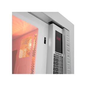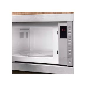 Acabamento em aço inox, Display digital vermelho, Teclas frontais, 5 níveis de potência, Descongelamento por tempo ou peso, 8 opções pré-programadas, Relógio, Trava de segurança, Função aviso de tempo, Luz interna, Prato giratório de vidro, Superfícies internas e externas lisas e resistentes.Função Grill