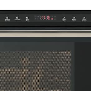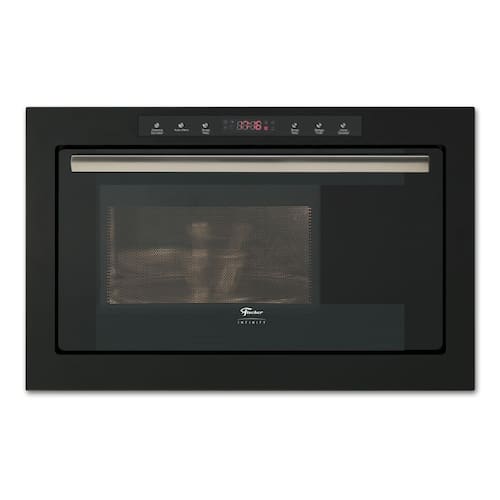 Micro-ondas de embutir Fischer Infinity 25L, com função dourador, painel digital, 6 funções, e potência de 1400W. Design em aço inox preto.Função Grill