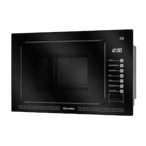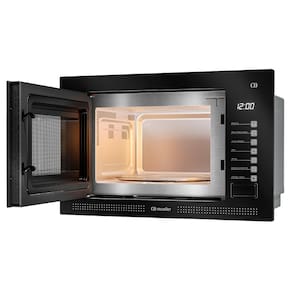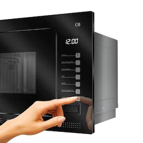 Capacidade ideal para famílias, com total de 1450 W de potência, painel digital touch com cinco níveis, função descongelar por peso ou tempo, oito receitas pré-programadas, +30 s de atalho, interior em inox durável, acabamento sofisticado em vidro espelhado preto praticidade e estilo para sua cozinha planejada.