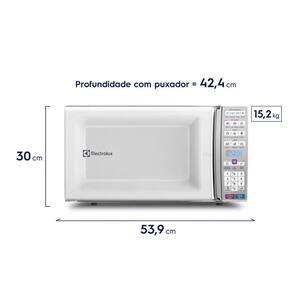 Caracteristicas: Puxador semi-embutido: Mais robustez e elegancia para o seu Micro-ondas. Display centralizado: Display na cor azul, inovador, muito mais bonito e moderno. Menu Light: Receitas mais saudaveis como vegetais, sopas e frutas. Menu Dia a Dia: Prepare as receitas mais utilizadas como arroz, macarrao e batata. Menu Kids: As receitas favoritas das criancas em um toque: bolo de caneca, pipoca e brigadeiro. Desliga Display: Economia de energia. Desligue o painel digital quando terminar de usar o aparelho. Funcao Trava Painel: Tecla que permite travar o acionamento do aparelho. Funcao Mudo: Aperte a tecla 0 por 4 segundos e o som do bip desaparece. Tecla Inicio/ +30s: Seu Micro-ondas funcionando em um toque. Programacao de tempo rapida e descomplicada. Tecla Porcao: Escolha a quantidade do alimento para cozimento. 10 niveis de potencia: Diversos ajustes de potencia para cozinhar diferentes receitas. Menu Descongelar: Descongela carne, frango, peixe e feijao. 34 litros de capacidade: Maior capacidade para o preparo das suas receitas. Funcao Tira Odor: Minimiza odores internos do Microondas, mantendo-o sempre limpo. Funcao Limpa: Facil Seu Micro-ondas sempre limpo em apenas um toque. Funcao Manter: Aquecido Suas receitas no tempo e na temperatura certa. QR Code: Videos com o modo de preparo das receitas do menu.