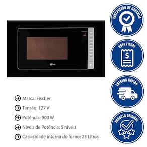 - Transforme sua cozinha com o Micro-Ondas Fischer Fit Line Embutir 25L.