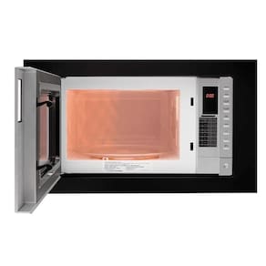 Micro-ondas de embutir com 25 litros de capacidade, função descongelar, automenu com 8 opções, relógio 24hrs, trava de segurança, 5 níveis de potência e display digital. Acabamento em aço Inox e porta com vidro preto.Função Grill