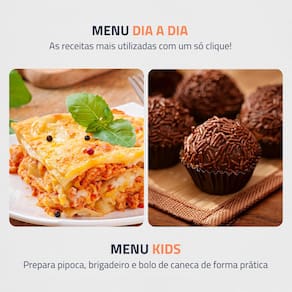 Para facilitar ainda mais sua rotina, o Menu Dia a Dia traz a praticidade de preparar as receitas favoritas com apenas um clique. Seja para descongelar o feijão ou aquecer o almoço, o painel digital intuitivo oferece controle total com máxima simplicidade.