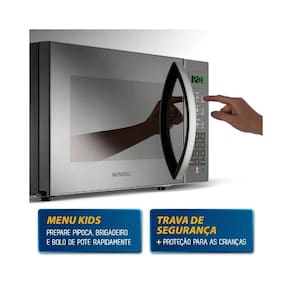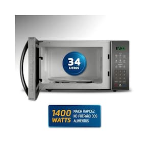 CAPACIDADE: 34 LITROS Micro-ondas com espaço interno de 34 litros, suficiente para atender toda a família. É ótimo para preparar alimentos em pratos, recipientes e refratários.