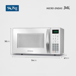 A Linha Micro-ondas MO-02-34-W é um lançamento Mondial e vai trazer mais inovação e beleza para a sua cozinha. Este modelo tem capacidade de 34 Litros, um espaço interno grande o suficiente para atender toda a família. É ótimo para preparar alimentos em pratos, recipientes e refratários. Tem funções de uso frequente, como Menu Dia a Dia e Menu Kids, além de funções que deixam a vida mais prática, como o botão +30 Segundos, Manter Aquecido, Descongelar e Tira Odor. Com uma potência de 1400w e 10 ajustes, o Micro-ondas da Mondial é versátil e prático, perfeito para a sua rotina. Aproveite a qualidade que só a Mondial oferece!