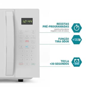 Sua cozinha livre de odores graças à função Tira Odor, e a Pintura Limpa Fácil te auxilia na hora da limpeza. O botão +30 segundos, do Micro-ondas PMO30B, resolve imprevistos com um clique, e o modo Manter Aquecido preserva a temperatura dos alimentos para servir tudo quentinho, mesmo após o preparo. Cada detalhe foi pensado para harmonizar praticidade e momentos memoráveis, seja um jantar em família ou um lanche rápido entre estudos.