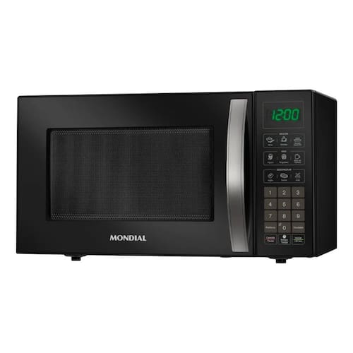 Micro-ondas Mondial MO-02-34B com alta capacidade de 34 litros, potência de 1400W, 10 ajustes de potência, função Descongelar, função Manter Aquecido, Menu Kids, Menu Dia a Dia, função Tira Odor e trava de segurança. Possui prato giratório e tecla iniciar fácil.Função Grill