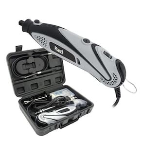 - Marca: Razi - Modelo: RZ-MR130 - Potência: 130W - Velocidade variável - Rotações: 10.000 a 32.000 RPM - Diâmetro Máximo da pinça: 3,2mm - Dupla Isolação - Acompanha eixo flexível chicote suporte de bancada, maleta e mais 193 acessórios - Dimensões da embalagem: 214 x 88 x 309mm - Peso bruto: 1,8Kg - Garantia: 90 dias