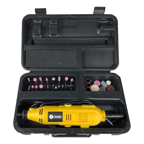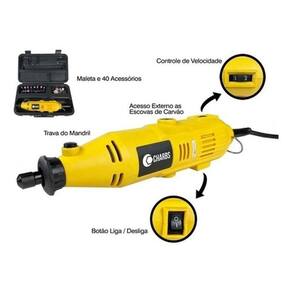 Micro retífica com 40 acessórios e maleta ch2904 charbs Voltagem: 220v Micro retífica com 40 acessórios e maleta ch2904 charbs - 110v e 220v A nova micro retifica charbs chega ao brasil com um super kit de acessórios. É a sua chance de ter uma micro retífica e ter tudo o que precisa para realizar os projetos que você sempre quis. Ideal em diferentes tipos de materiais e superfícies para trabalhos de desbaste, remoção, limpeza, polimento, gravação, lixamento e furação de diferentes tipos de materiais e superfícies. - marca: charbs - modelo: ch2904 - potência: 135w - voltagem: 127v - frequência: 60 hz - 6 velocidades - velocidade variável entre 8.000 e 30.000 rpm - acompanha maleta e 40 acessórios - isolação dupla - peso: 1,15kg - : 90 dias Com a mini retífica, você recebe uma prática maleta contendo com um kit de 40 acessórios para micro retífica contendo 40 peças, para lixar, gravar, polir, desbastar, cotar, furar, e muito mais: - acessórios para furar: : broca - acessórios para lixar: :: discos de lixa :: tubos de lixa :: adaptador para tubo de lixa - acessórios para gravar: :: pontas diamantadas - acessórios para cortar: :: discos de corte :: adaptador para disco - acessórios para desbastar: :: pontas montadas :: disco de desbaste - acessórios para polir: :: feltros de polir :: adaptador para feltro de polir - outros acessórios: :: chave de boca :: pedra para afiar :: pinça 3mm Marca: Não Informado