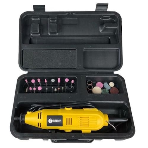 Micro Retífica com 40 Acessórios e Maleta CH2904 Charbs - 110V A nova micro retifica Charbs chega ao Brasil com um super kit de acessórios. É a sua chance de ter uma Micro Retífica e ter tudo o que precisa para realizar os projetos que você sempre quis. Ideal em diferentes tipos de materiais e superfícies para trabalhos de desbaste, remoção, limpeza, polimento, gravação, lixamento e furação de diferentes tipos de materiais e superfícies. - Marca: Charbs - Modelo: CH2904 - Potência: 135W - Voltagem: 127V - Frequência: 60 Hz - 6 Velocidades - Velocidade Variável entre 8.000 e 30.000 Rpm - Acompanha maleta e 40 acessórios - Isolação Dupla - Peso: 1,15Kg - Garantia: 90 dias Com a Mini Retífica, você recebe uma prática maleta contendo com um kit de 40 acessórios para micro retífica contendo 40 peças, para lixar, gravar, polir, desbastar, cotar, furar, e muito mais: - Acessórios para Furar: : Broca - Acessórios para Lixar: :: Discos de lixa :: Tubos de lixa :: Adaptador para tubo de lixa - Acessórios para Gravar: :: Pontas diamantadas - Acessórios para Cortar: :: Discos de corte :: Adaptador para disco - Acessórios para desbastar: :: Pontas montadas :: Disco de desbaste - Acessórios para Polir: :: Feltros de polir :: Adaptador para feltro de polir - Outros Acessórios: :: Chave de boca :: Pedra para afiar :: Pinça 3mm Ean: 7895099089370