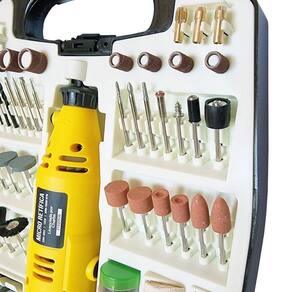 Itens inclusos: - 1 Micro Retífica Charbs - 1 Eixo Flexível - 6 Pinças - 8 Tubos de Lixa - 3 Brocas - 9 Pontas diamantadas - 2 Suporte para discos de corte - 1 Suporte para disco de polimento - 2 Suportes para tubos de lixa - 3 Escovas de nylon - 3 Escovas de metal - 10 Pontas montadas - 1 Frasco com paste de polimento - 7 Discos de polir - 14 Discos de desbastar - 90 Discos de lixa - 65 Discos de corte - 5 Discos de corte reforçados - 1 Pedra de amolar - 1 Chave de troca - 1 Ponta para polir