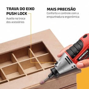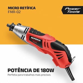 A Micro Retífica Mondial Power Tools oferece potência e versatilidade para uma variedade de trabalhos residenciais. Com motor de 180W, é ideal para cortar, retificar, lixar, polir e muito mais. Sua empunhadura ergonômica garante conforto e precisão, enquanto a velocidade variável de 8.000 a 35.000 RPM se adapta a diferentes materiais e aplicações. Além disso, acompanha maleta com 44 acessórios, garantindo que você tenha sempre a ferramenta certa para qualquer projeto.